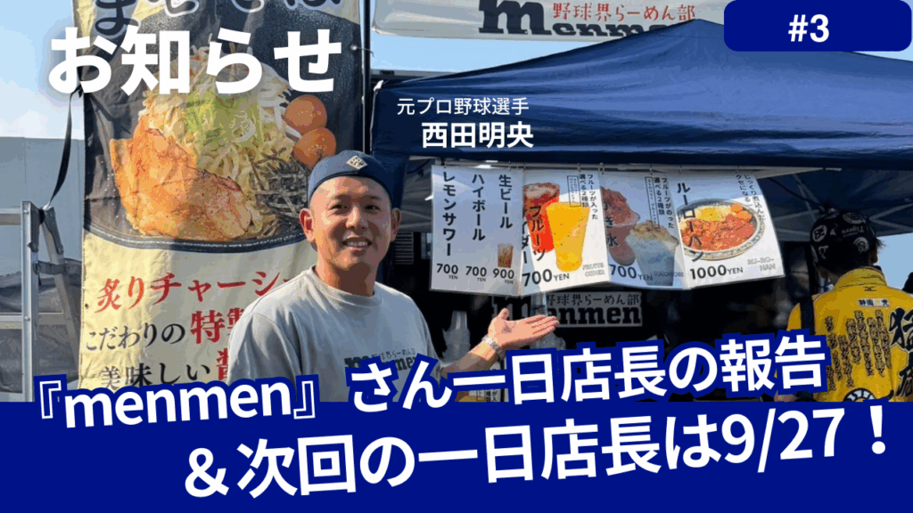 「野球界らーめん部menmen」さん一日店長レポート&次回は9/27に登場予定!